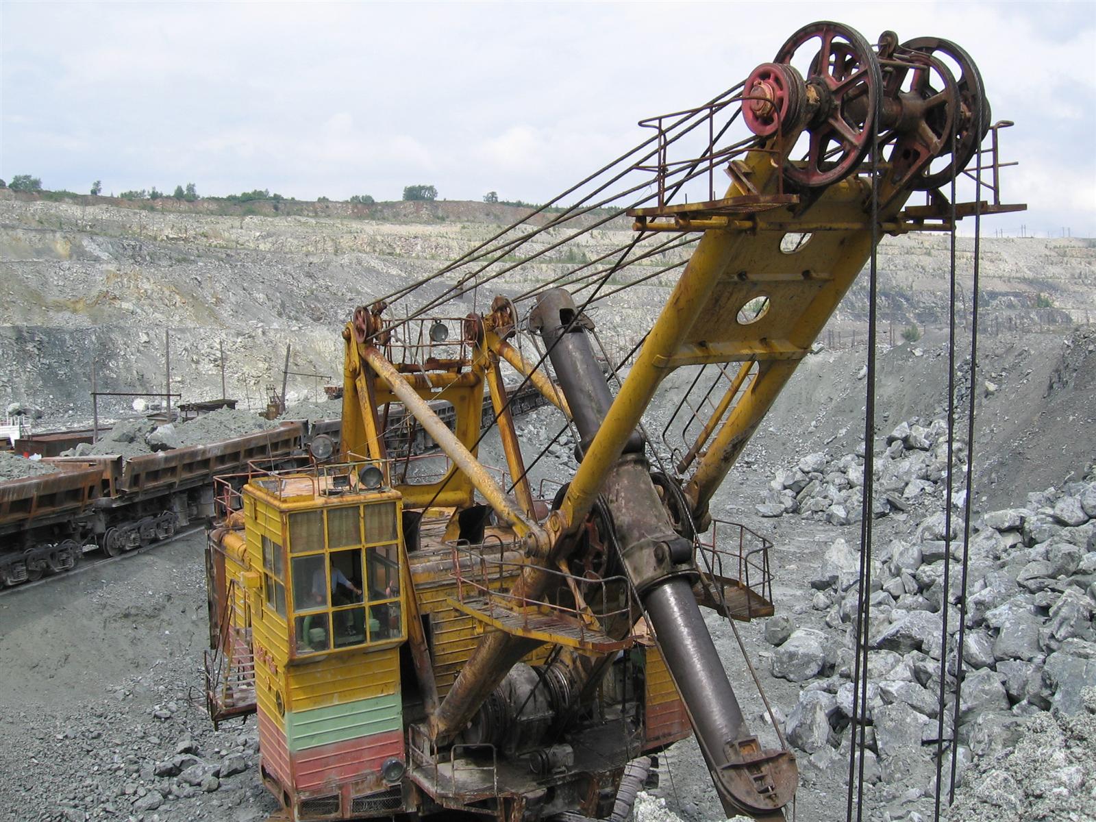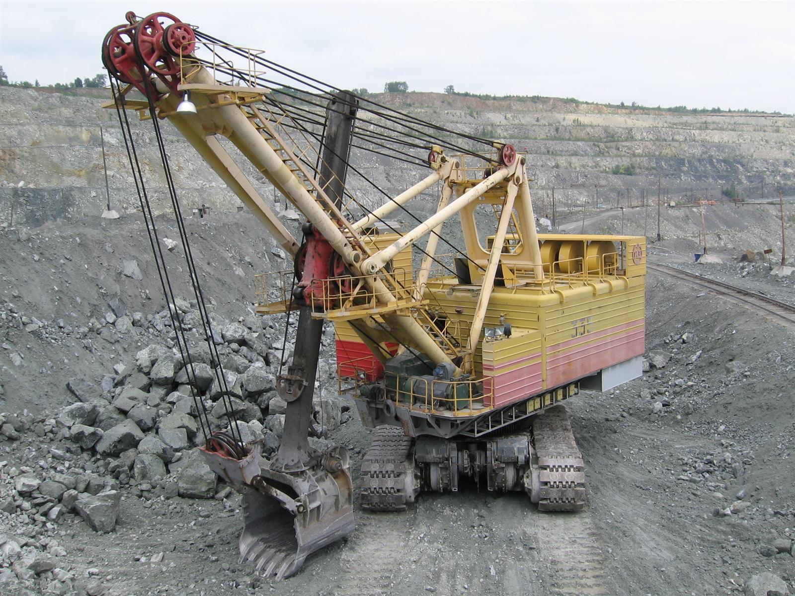 на перевалочном пунке работает эксковатор, грузит породу в поезда которые потом едут на фабрики для переработки и Асбеста)